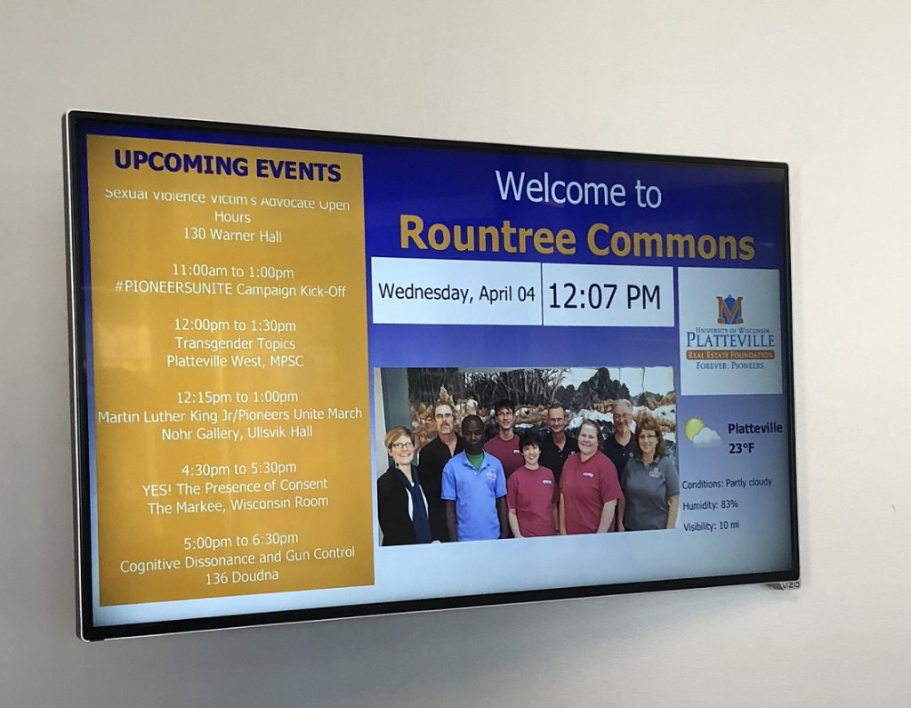 The institute uses a digital information board to communicate key messages to students.
