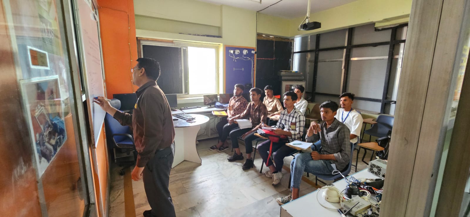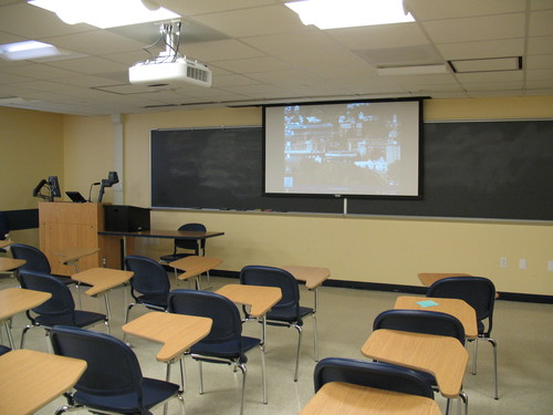 “The classroom is equipped with a projector for presentations and lectures.”